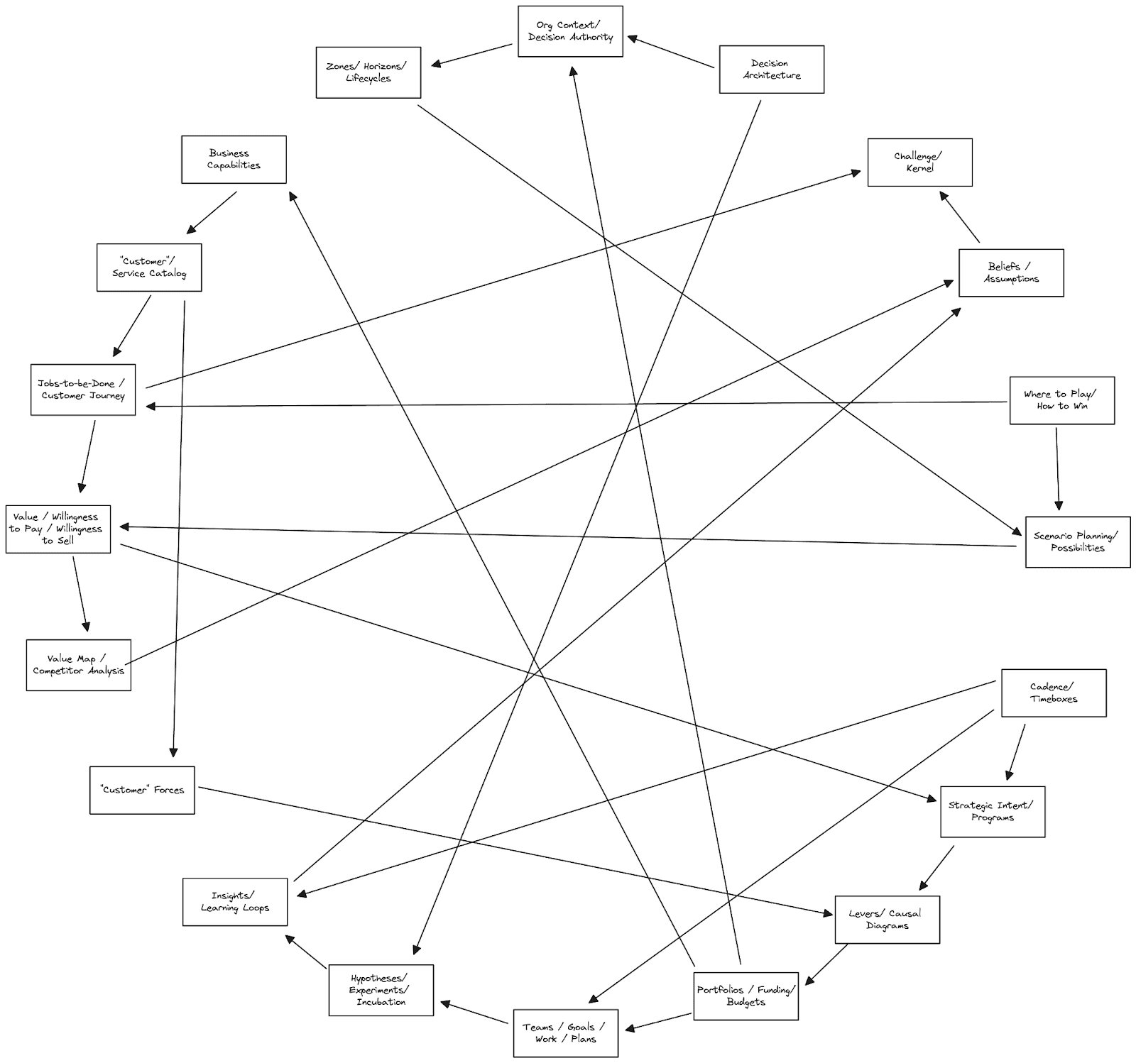 Connecting strategy to execution. Connected through what? What are the nodes? What are the paths or edges?