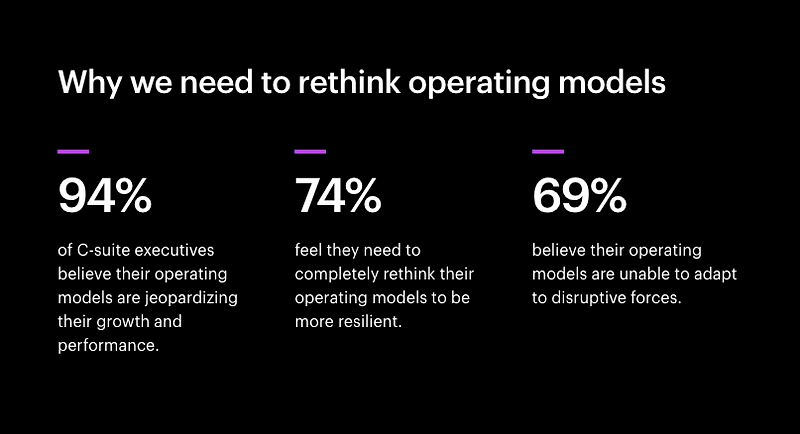There’s a growing gap between what’s technologically possible and what companies can actually absorb. Recent research from Accenture backs this up: 94% of executives believe their current operating models are holding back growth, and 69% admit their models can’t adapt to disruptive forces. In other words, while tech sprints ahead, we're feeling pressure that the way we operate should be changing dramatically, but it isn't.