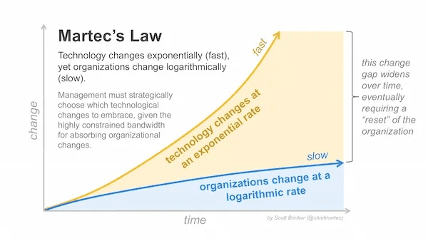 Scott Brinker phrased it well back in 2017, “Technology changes exponentially, but organizations change logarithmically.”